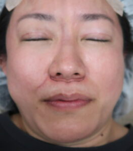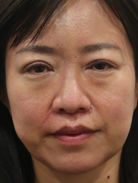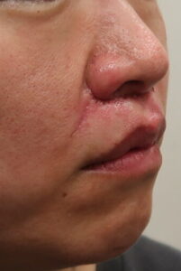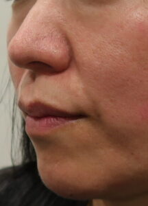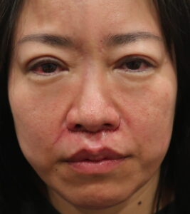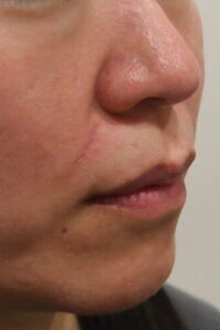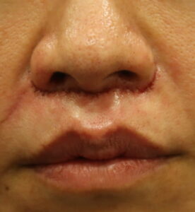 手術直後は腫脹は軽度です。白赤唇の形態は変わっています。スッキリ感はもちろん観られます。下顔面全体もスッキリしましたか?。