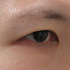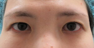 今月初めに内服処方の為に再診した際に、私に戻って眼瞼の再相談を受けました。経過を聴取していた際に再手術を希望されます。どうも開瞼は向上していなかった模様です。後葉性眼瞼下垂症を改善されていない様です。挙筋前転は施行されていません。前回の画像上も開いていません。前葉性眼瞼下垂症は、重瞼術切開法で止まってはいますが、切除が足りないようで、また皮膚の進展が診られます。そもそも引き込みが弱かった様です。眼瞼下垂症に対しては、もう一度重瞼術切開法と眼瞼結膜側からの挙筋前転が適応です。重瞼固定は強固に止めます。