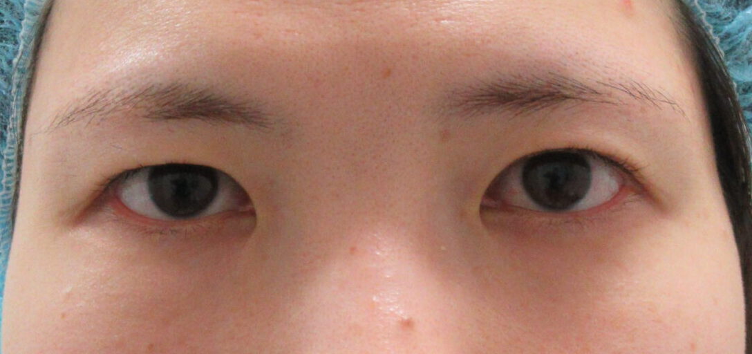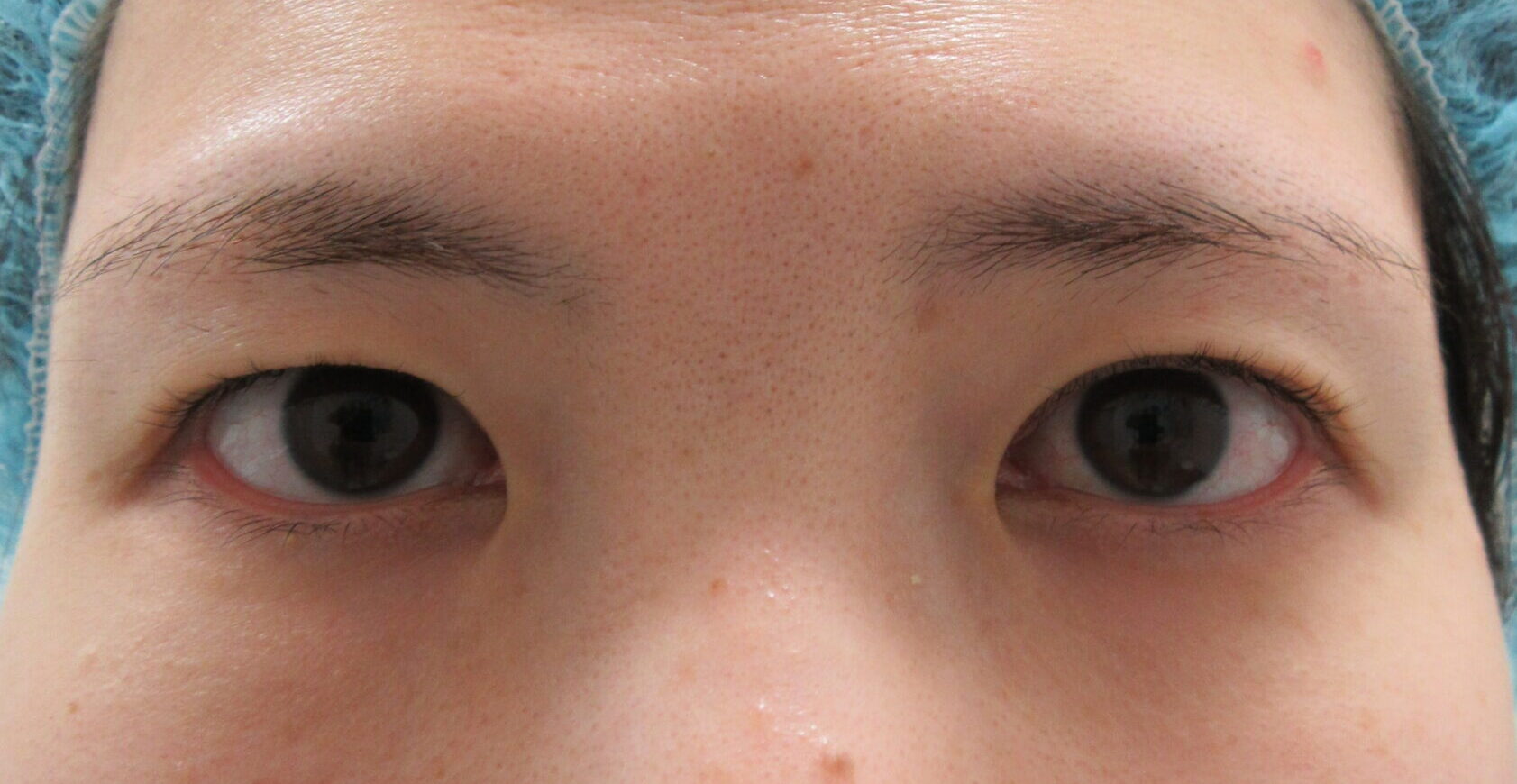 今月初めに内服処方の為に再診した際に、私に戻って眼瞼の再相談を受けました。経過を聴取していた際に再手術を希望されます。どうも開瞼は向上していなかった模様です。後葉性眼瞼下垂症を改善されていない様です。挙筋前転は施行されていません。前回の画像上も開いていません。前葉性眼瞼下垂症は、重瞼術切開法で止まってはいますが、切除が足りないようで、また皮膚の進展が診られます。そもそも引き込みが弱かった様です。眼瞼下垂症に対しては、もう一度重瞼術切開法と眼瞼結膜側からの挙筋前転が適応です。重瞼固定は強固に止めます。