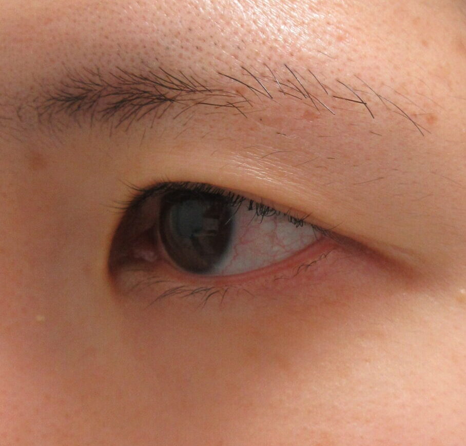 開瞼時近接画像では眼瞼部のデザインが隠れてしましますが、そのカーブは眼球に沿った自然なラインです。ずらすと二本線になります。