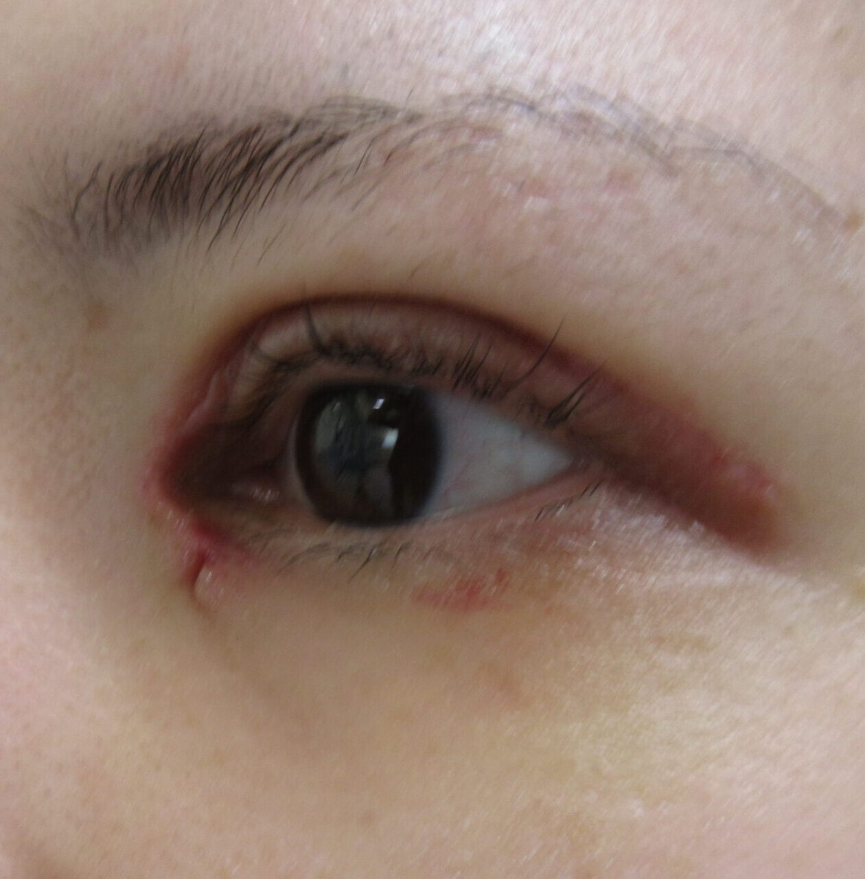 施術のリスク・副作用について:・麻酔薬にて、アレルギー反応を起こす場合があります。その場合は適切な処置を行います。・腫れは個人差がありますが、手術直後から少し腫れがあり、翌日がピークで徐々に引いていきます。目立つほどの大きな腫れは1~2週間程度です。・術後のむくみや細かな左右差の改善には、3ヶ月程度かかります。・内出血が起こった場合は完全にひくまでに2週間程度かかることがあります。・感染予防のため、抗生剤を内服していただきます。・手術直後は、つっぱりを感じることがありますが、2週間程度で改善していきます。・目頭の切開部位は、目やにがでる場所ですので、消毒にご来院下さい。・手術当日は、洗顔をお控え下さい。・手術後3日間は、飲酒・激しい運動・サウナ・入浴など、血流が良くなることはお控え下さい。・手術後1週間(抜糸まで)は、切開部位のお化粧はお控え下さい。・ケロイド体質の方は傷跡が残りやすい場合があります。