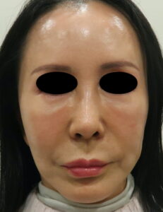 その後は年に数回何らかの美容医療を施して来て、1年前には「他院で咬筋(人間には無いエラ)ボトックスとスレッドリフトを併用したら、余計にJowlが垂れました。」との事で、私がもう一度スレッドリフト【3Dlift+コグ】で挙げたしました。直後に2回目の眉下切開手術を施行しました。その経過も含め、昨年末来院されました。いきなり「先生!。ブログに何回もリフト手術した方いるって書いていますよね?!。5年ごとの人も居るんでしょう?。出来るなら私ももう一度先生にお願い!。」と有難いお言葉を頂きました。私「合わせて3回目でしょう。書いた通り8回リフト手術をした患者さんも居ますよ。」と強弁して、「同じ切開で同じ剥離ですが、9年経ているから楽に切れます。」と豪語しました。