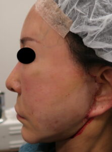術直後の画像。Jowl は消失しています。腫脹はこの程度です。