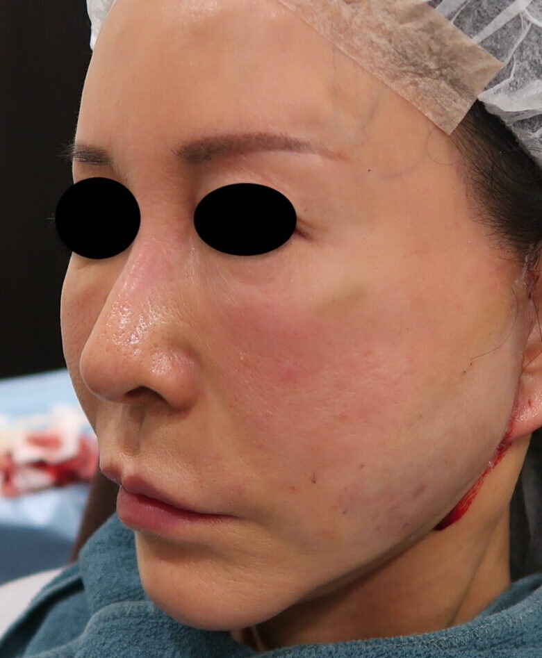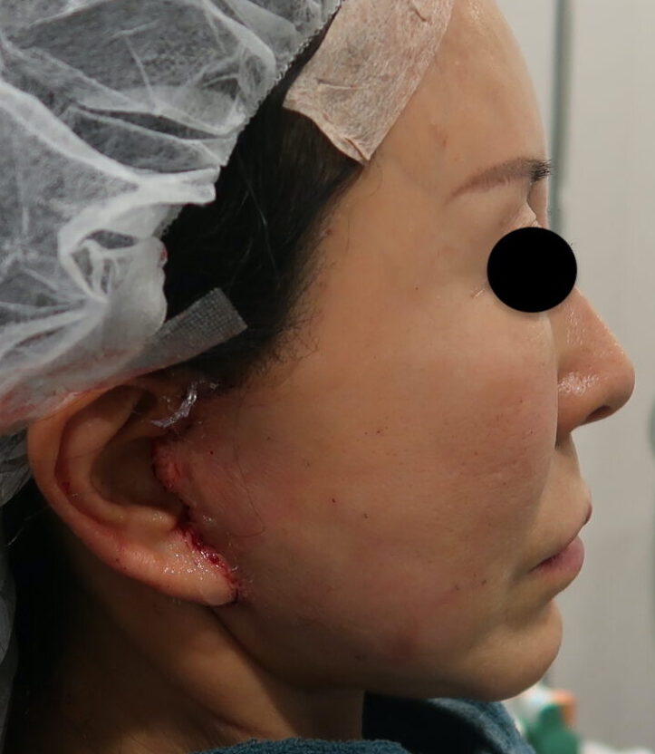 術直後の画像。Jowl は消失しています。腫脹はこの程度です。